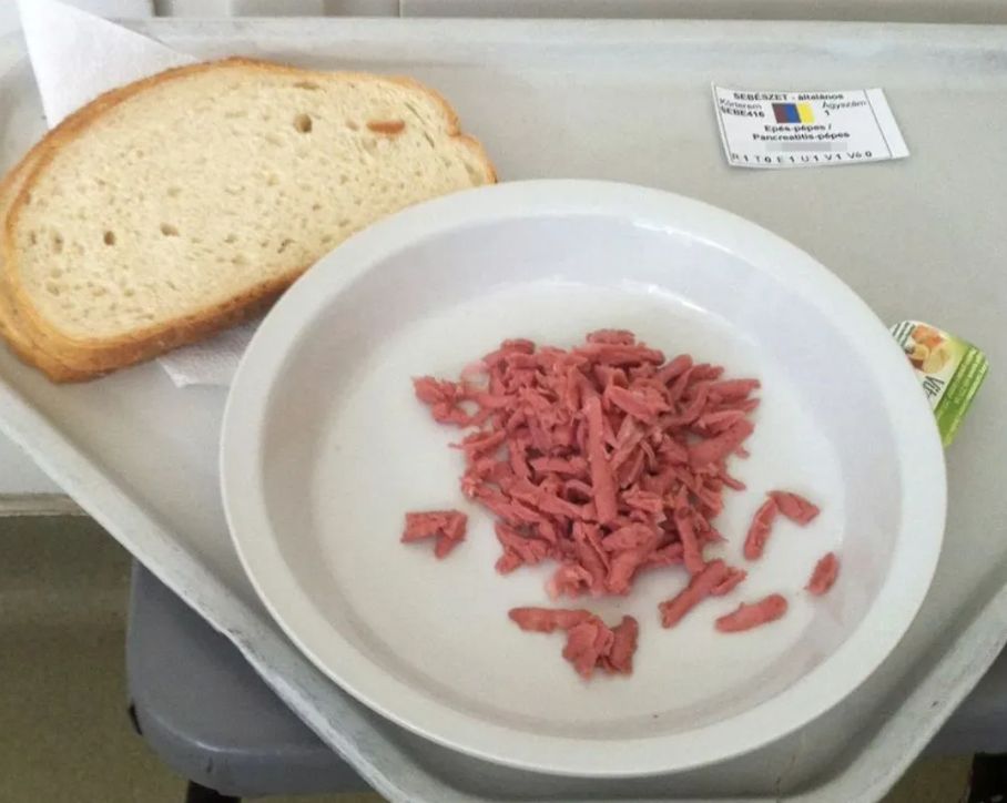 Nemocniční strava je však kultuře na hony vzdálená. Někteří uživatelé internetu ze země zveřejnili fotografie z nemocnice, včetně podnosu, na kterém byl pouze chléb, máslo a trocha mleté bologne.