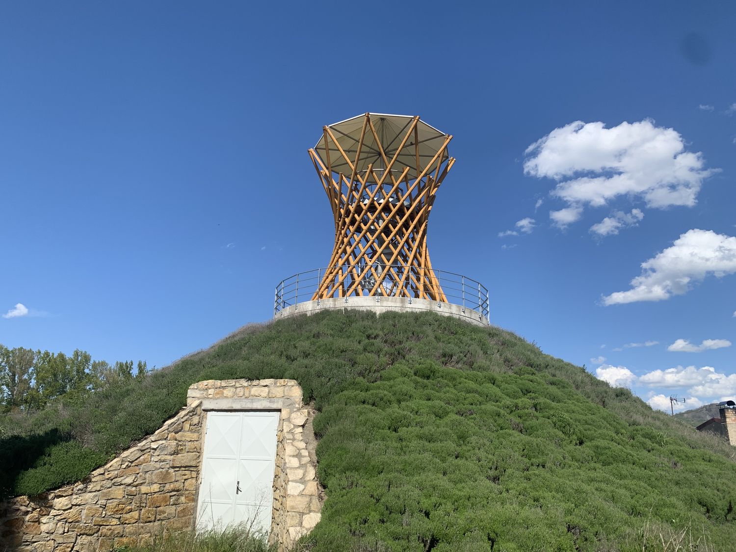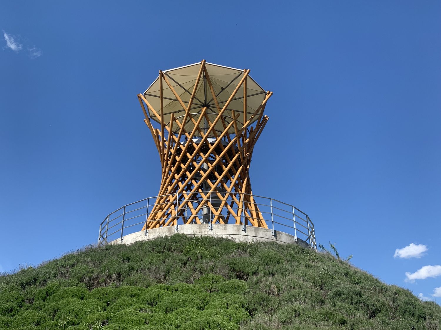 Konstrukce rozhledny je skutečně neobvyklá a architektonicky zajímavá. Na uměle vytvořeném kopečku, kde se v minulosti skladoval led pro chlazení piva v blízké restauraci, byla vybudována 7,3 metrů vysoká rozhledna s ochozem ve 4 metrech. Toto místo má tedy svou historii, která se datuje až do roku 1869, kdy zde stávala podobná vyhlídka.