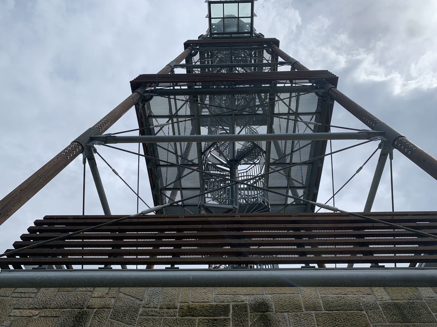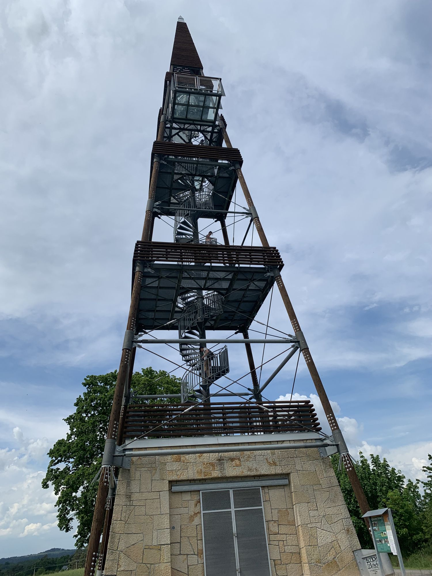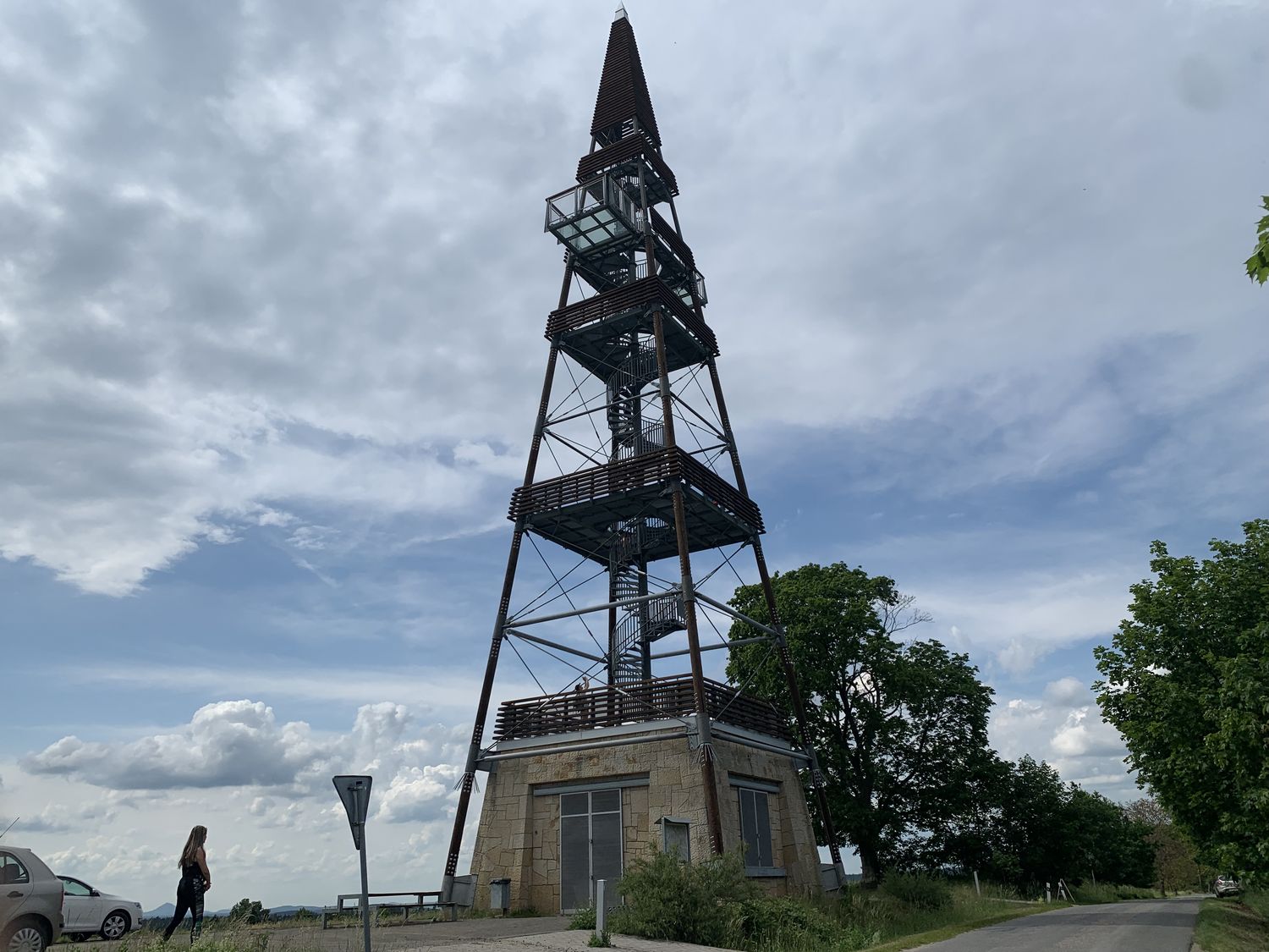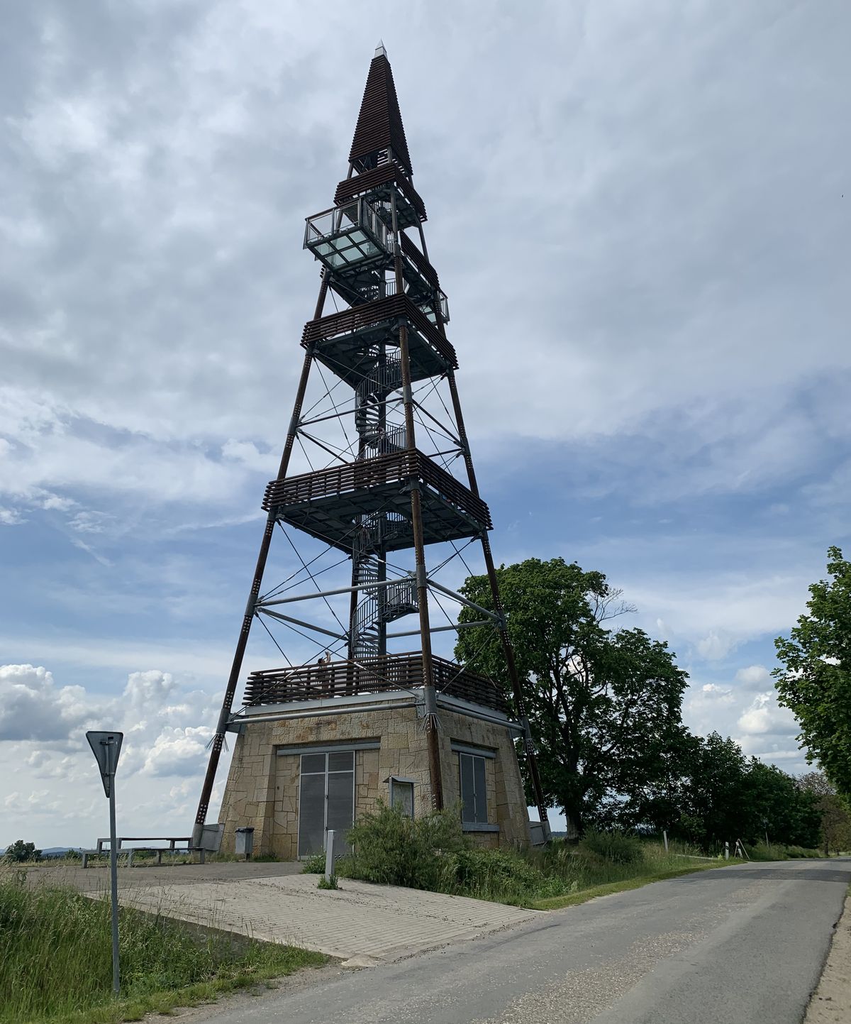 Rozhledna má podobu téměř 40 metrů vysokého štíhlého jehlanu s kovovou konstrukcí a zděnou základnou. Jehlan má čtvercovou základnu o rozměru stran 8,6 metru. Jedná se o dřevěnou jehlanovou věž s ocelovým točitým schodištěm, postavenou na mohutné betonové podstavě obložené pískovcovým kamenem. Zajímavostí rozhledny jsou dva vysunuté balkony z vyhlídkové plošiny ve čtvrtém patře. Nejvíce si užijete výhled z vrcholu, kde je prosklená podlaha, ze které se rozklepou kolena všem, kteří mají strach z výšek.