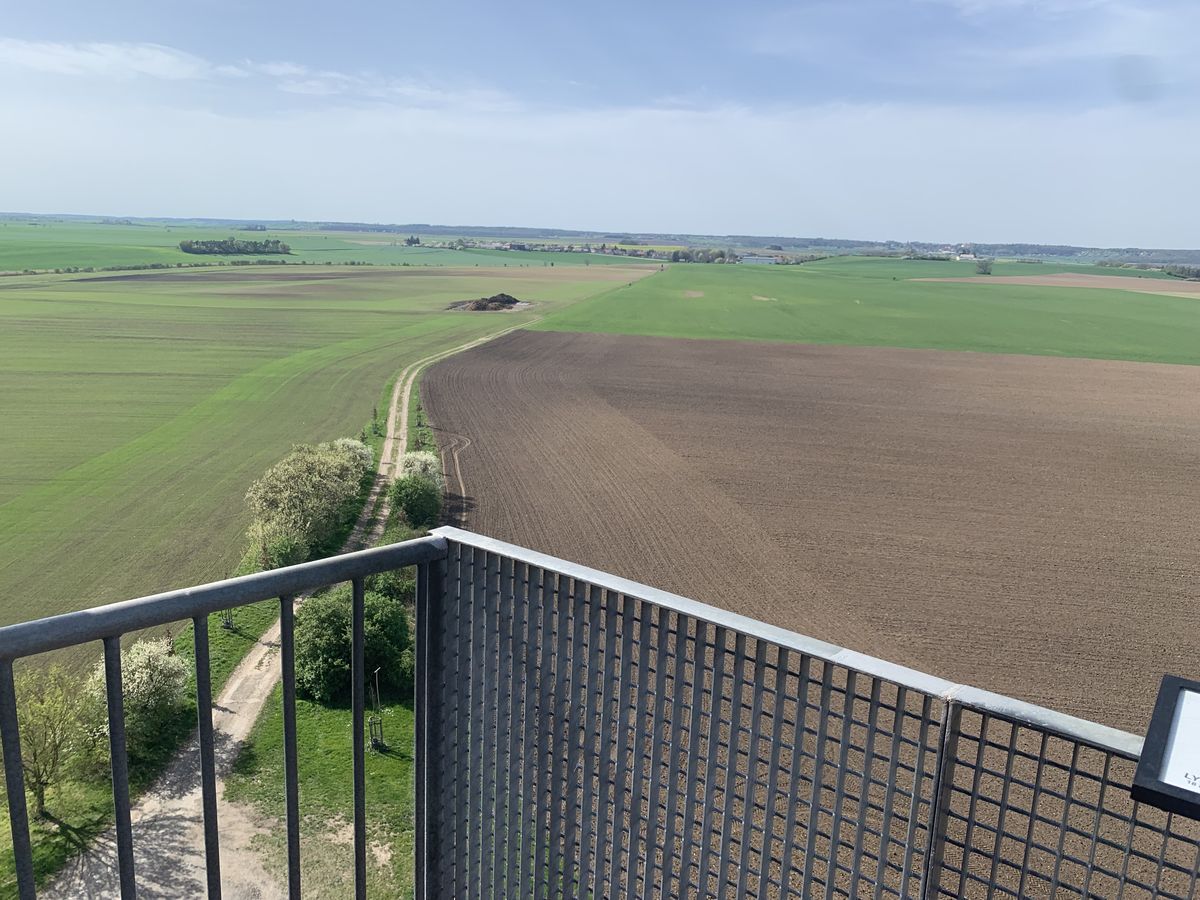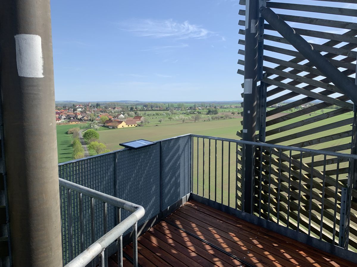 Z vrcholu rozhledny lze zahlédnout žižkovský vysílač, Ještěd, Krkonoše a mnoho dalších významných dominant. Rozhlédnutí se zde otevírá směrem ke všem světovým stranám, což umožňuje pozorovat, jak se rovinatá polabská krajina postupně mění v ondulované pahorkatiny a v dálce vystupují siluety hor.