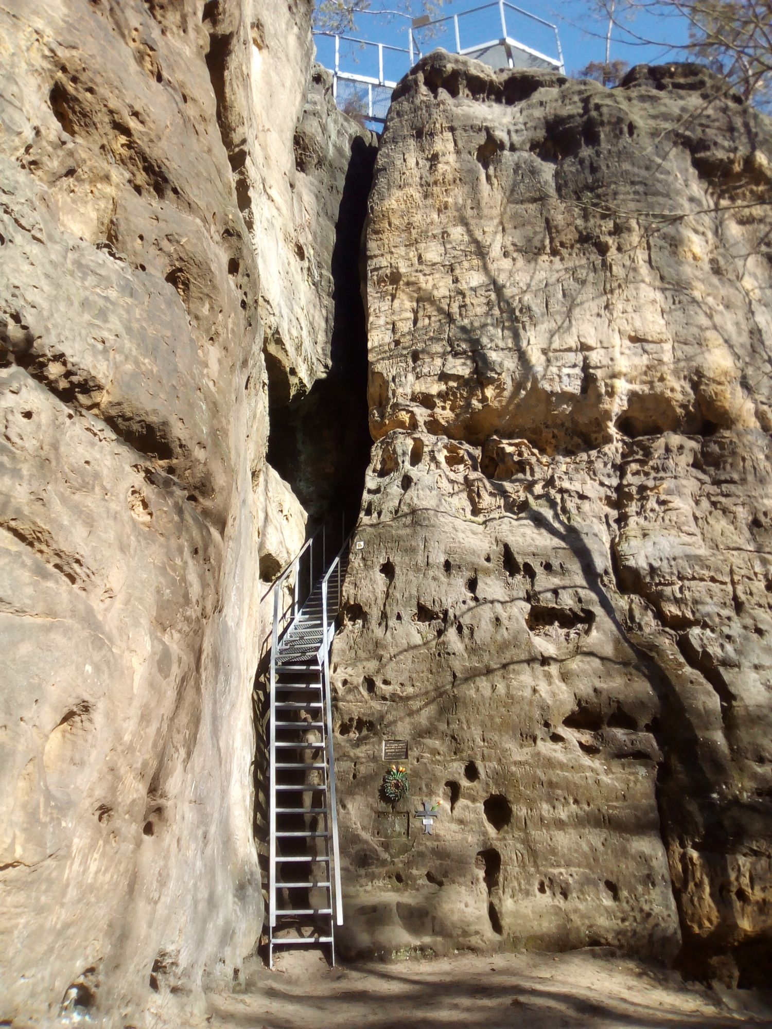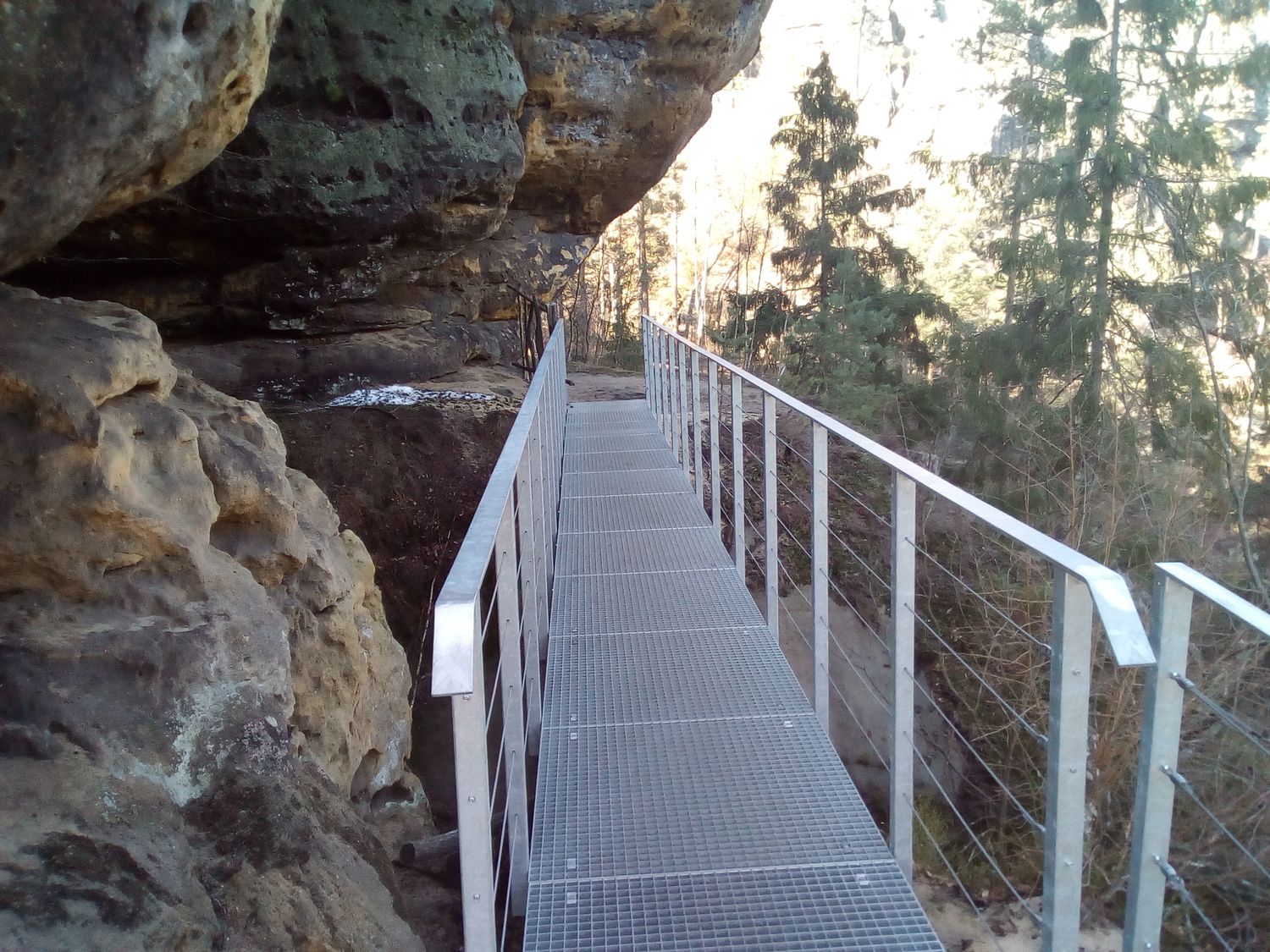 Dnes je hrad Falkenštejn zpřístupněn turistům pomocí moderních bezpečnostních prvků, které umožňují návštěvu i méně zdatným návštěvníkům. Na hradě Falkenštejn u Jetřichovic to už sice teď není taková divoká romantika, jako bejvávala, když se sem člověk musel šplhat skalní rozsedlinou po trouchnivějícím dřevěném žebříku, nicméně nutno uznat, že současná podoba zpřístupnění tohoto velice zajímavého místa, má něco do sebe. nyní se na hrad dostanete kovovými pevnými schody, které jsou sice bezpečné, ale nic pro nikoho, kdo nemá rád výšky. Takto vypadá vstup na hrad: