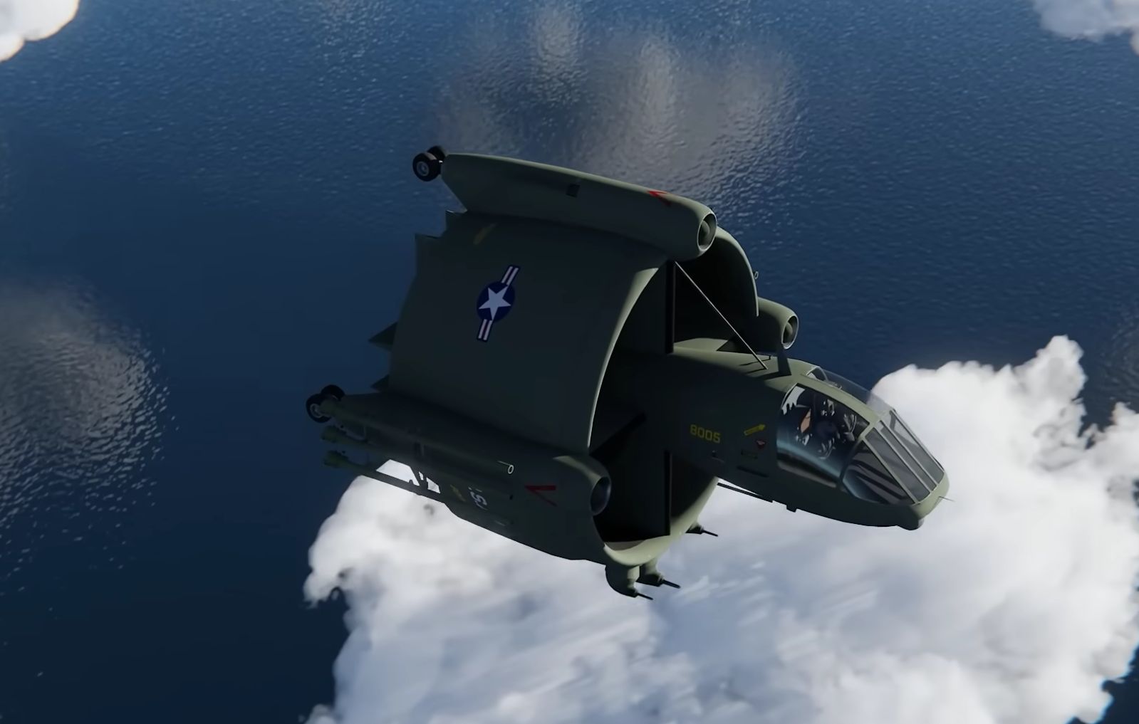 Model 49, v podstatě „létající tank“, by byl schopen vzlétat a přistávat vertikálně jako vrtulník, létat horizontálně jako letadlo, vznášet se a dokonce i fungovat jako pohyblivá zbraňová platforma na zemi.