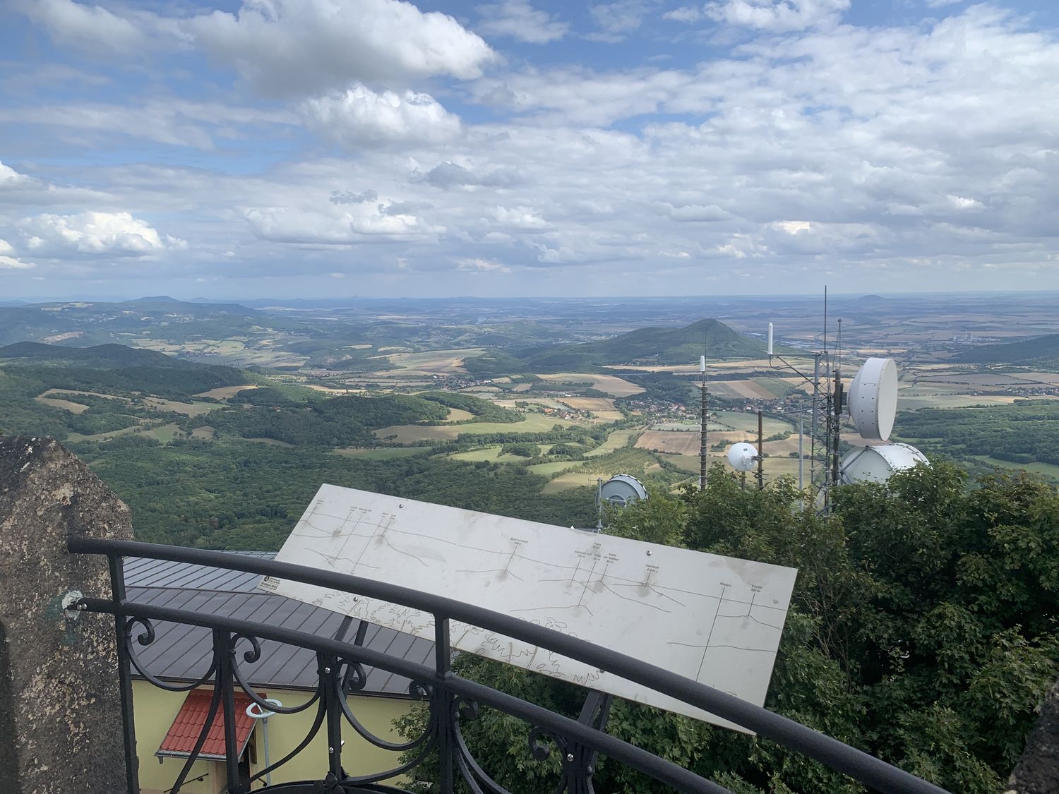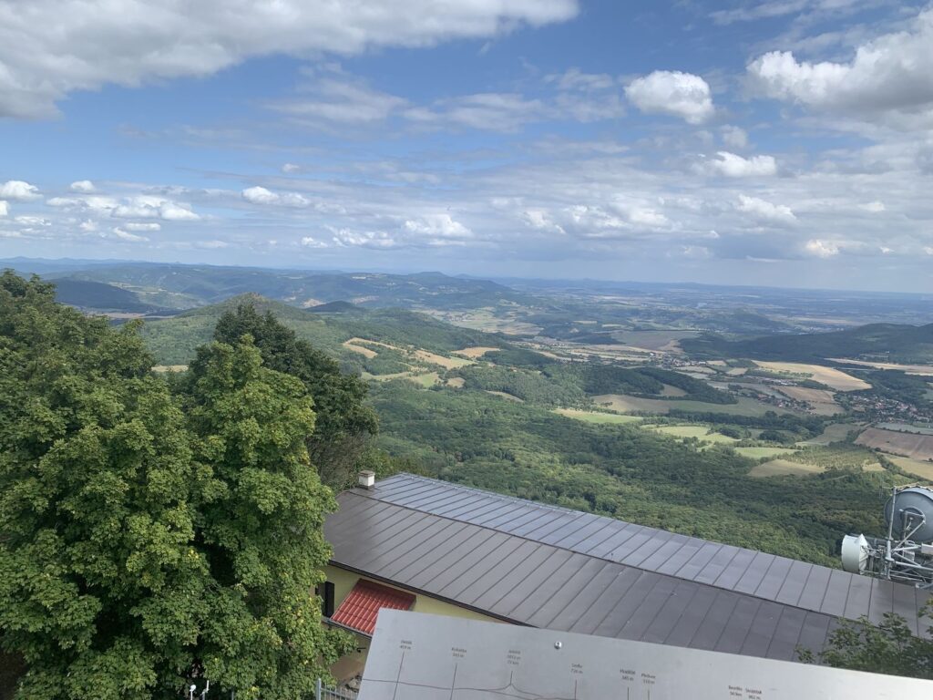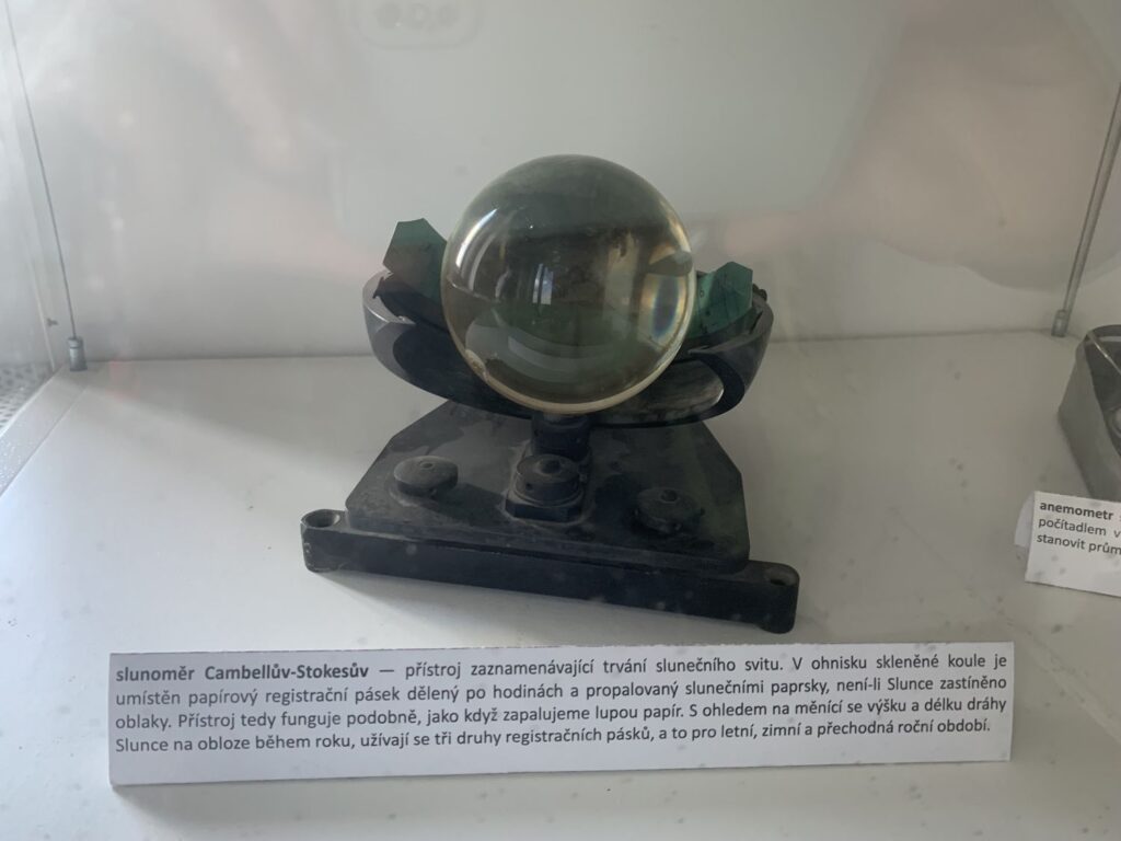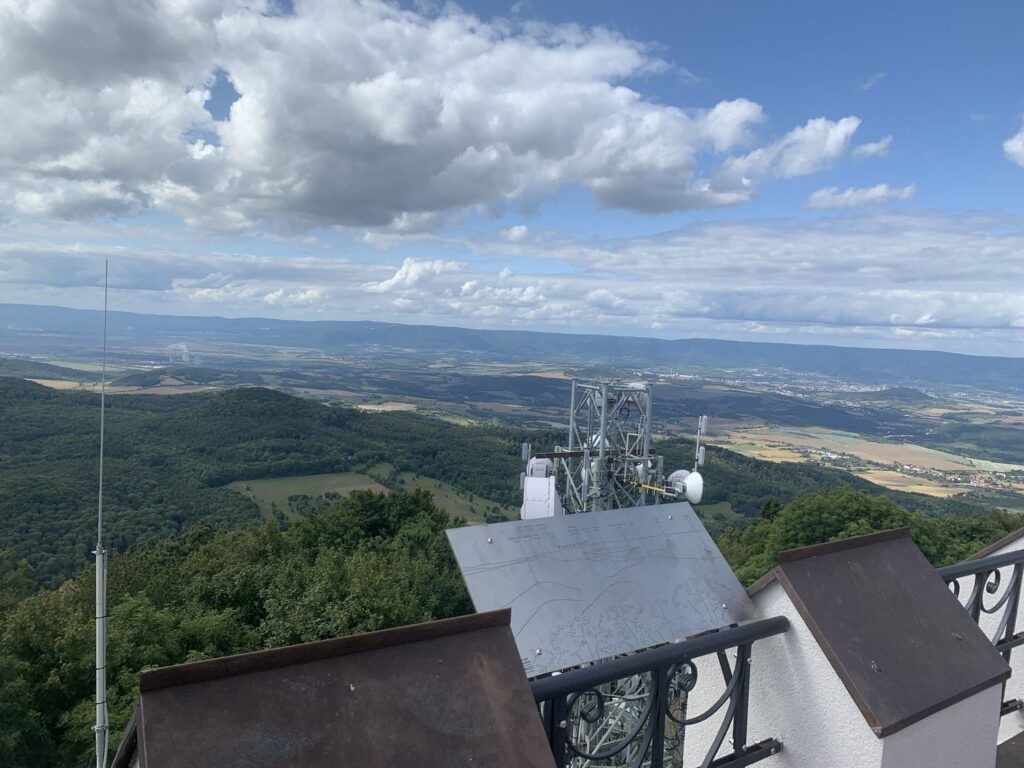 Milešovka je známá také jako Hromová hora a je největrnější horou v České republice s nejvíce bouřemi. K napočítání úplně bezvětrných dní v roce stačí prsty obou rukou a vítr se zde mnohdy prohání rychlostí více než 100 km v hodině. Kuželovitý tvar hory způsobuje, že naměřené hodnoty meteorologických prvků nejsou ovlivňovány stoupajícími větry, které horu většinou obtékají. Tato specifická topografická poloha činí z Milešovky ideální místo pro meteorologická pozorování a výzkum atmosférických jevů. Nahoře narazíte na tento skvělý rozcestník, který vám ukazuje vzdálenost i směr k různých zajímavým místům ve světě, jako je Mt. Everest nebo Elbrus.