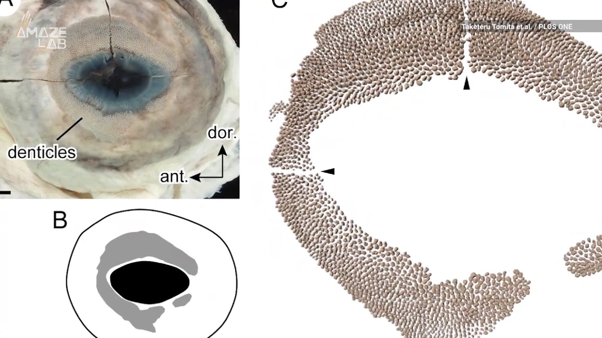 Živočišná říše je plná podivných očních bulv, od volně se pohybujících kukadel chameleona (který dokáže pohybovat každým svým okem samostatně) až po zornice sépie ve tvaru písmene W. Jedním z nejpodivnějších atributů oční bulvy na Zemi však je žralok velrybí (Rhincodon typus). Jelikož tito jemní mořští obři nemají oční víčka, která by chránila jejich zrakové orgány, vyvinuli si tisíce drobných zubů známých jako „dermální dentikuly“
